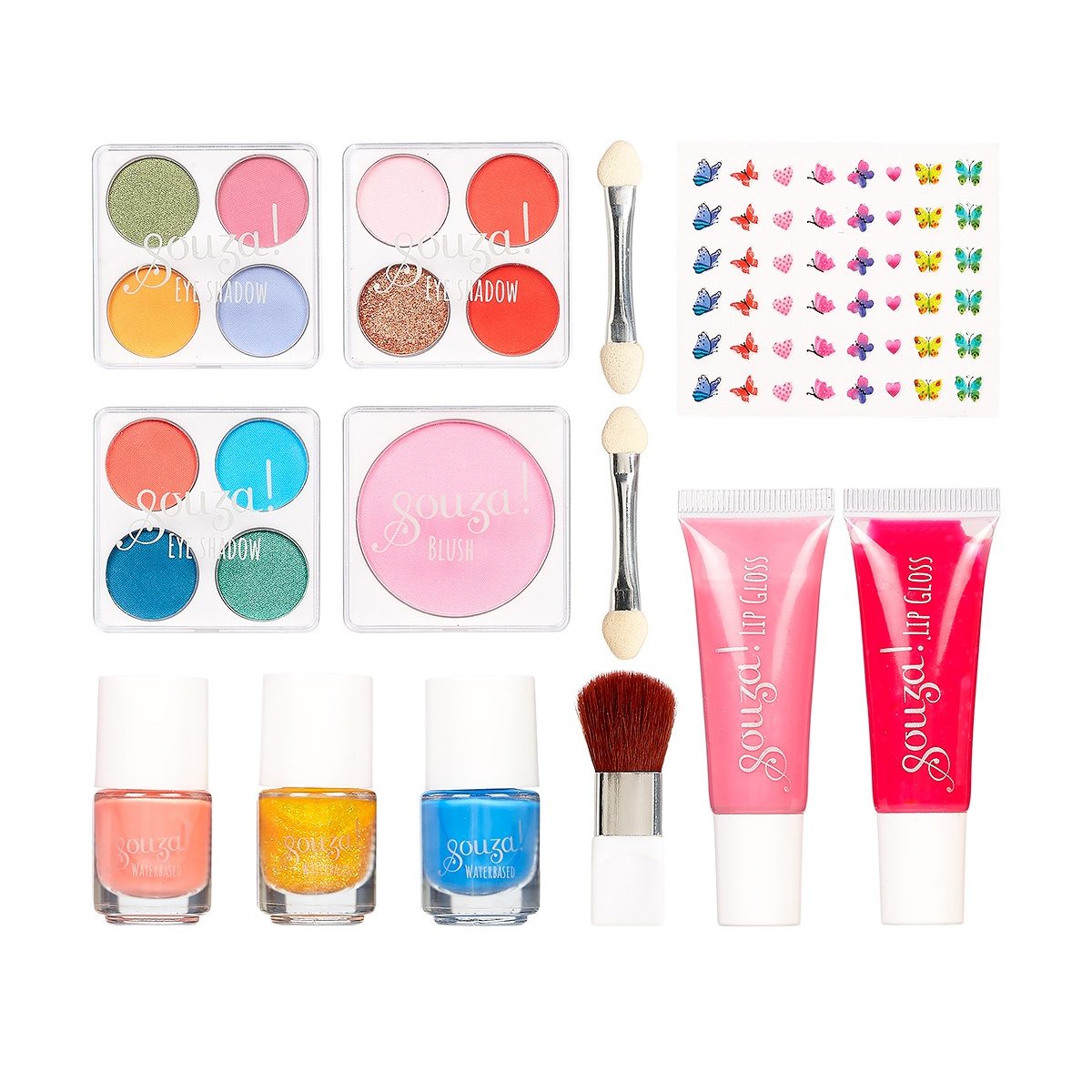 - Contenuto: 12 ombretti, 1 fard, 2 lucidalabbra, 3 smalti, adesivi per unghie, pennello e applicatori.