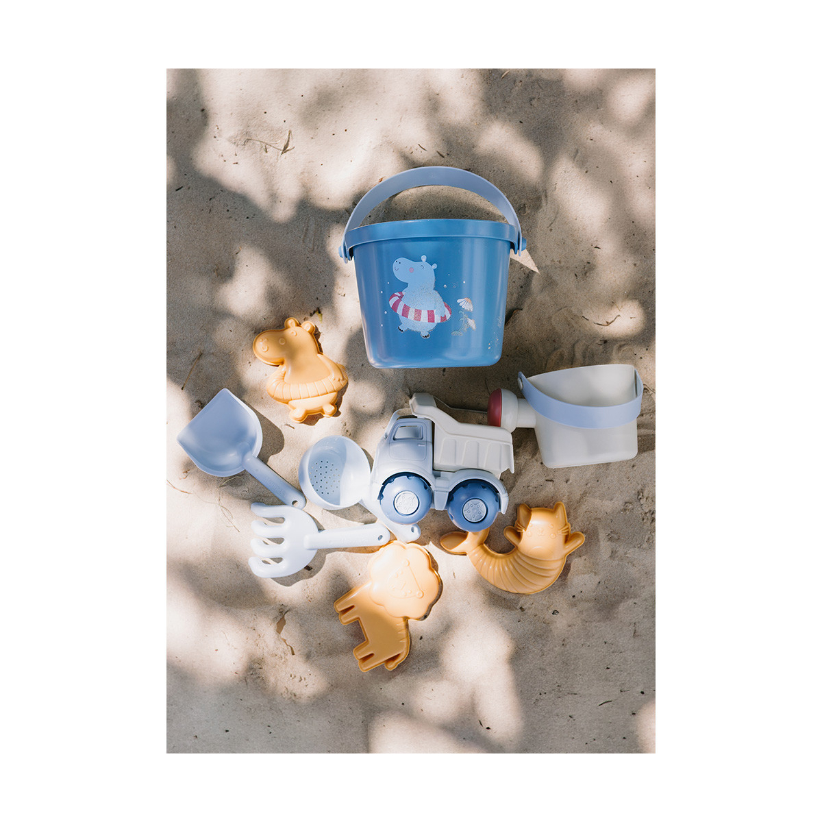 Il set giochi spiaggia è pensato per trasformare ogni giornata all’aperto in un momento di gioco creativo e divertente. Perfetto per la spiaggia ma anche per il parco o la sabbiera, include tutto il necessario per costruire, scavare e inventare piccole opere di sabbia. Il secchiello, gli attrezzi e le formine permettono ai bambini di sperimentare e creare, mentre il camioncino aggiunge un elemento di gioco simbolico che rende l’esperienza ancora più coinvolgente. I materiali sono leggeri, flessibili e piacevoli da maneggiare anche per i più piccoli, rendendo il set adatto fin dai primi mesi. Ogni elemento è studiato per essere resistente e facile da usare, accompagnando i bambini nelle loro esplorazioni all’aria aperta tra sabbia, acqua e fantasia.