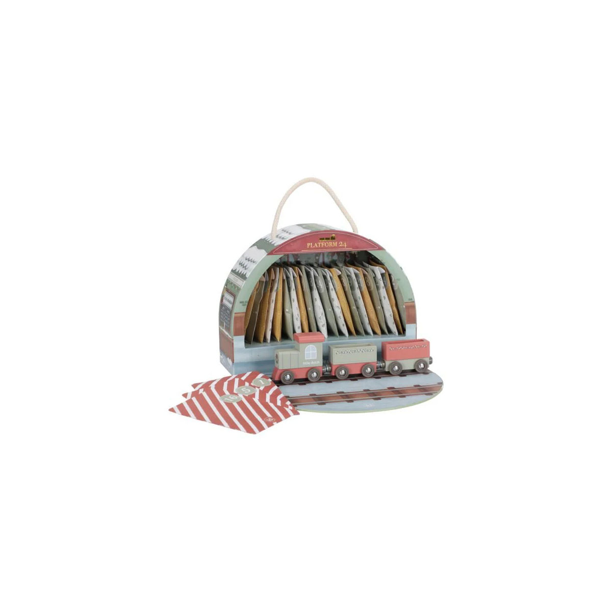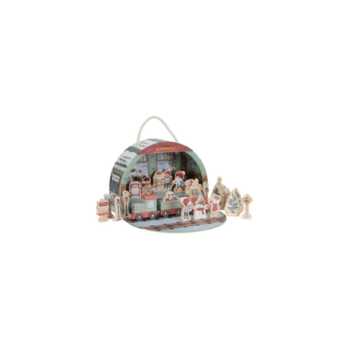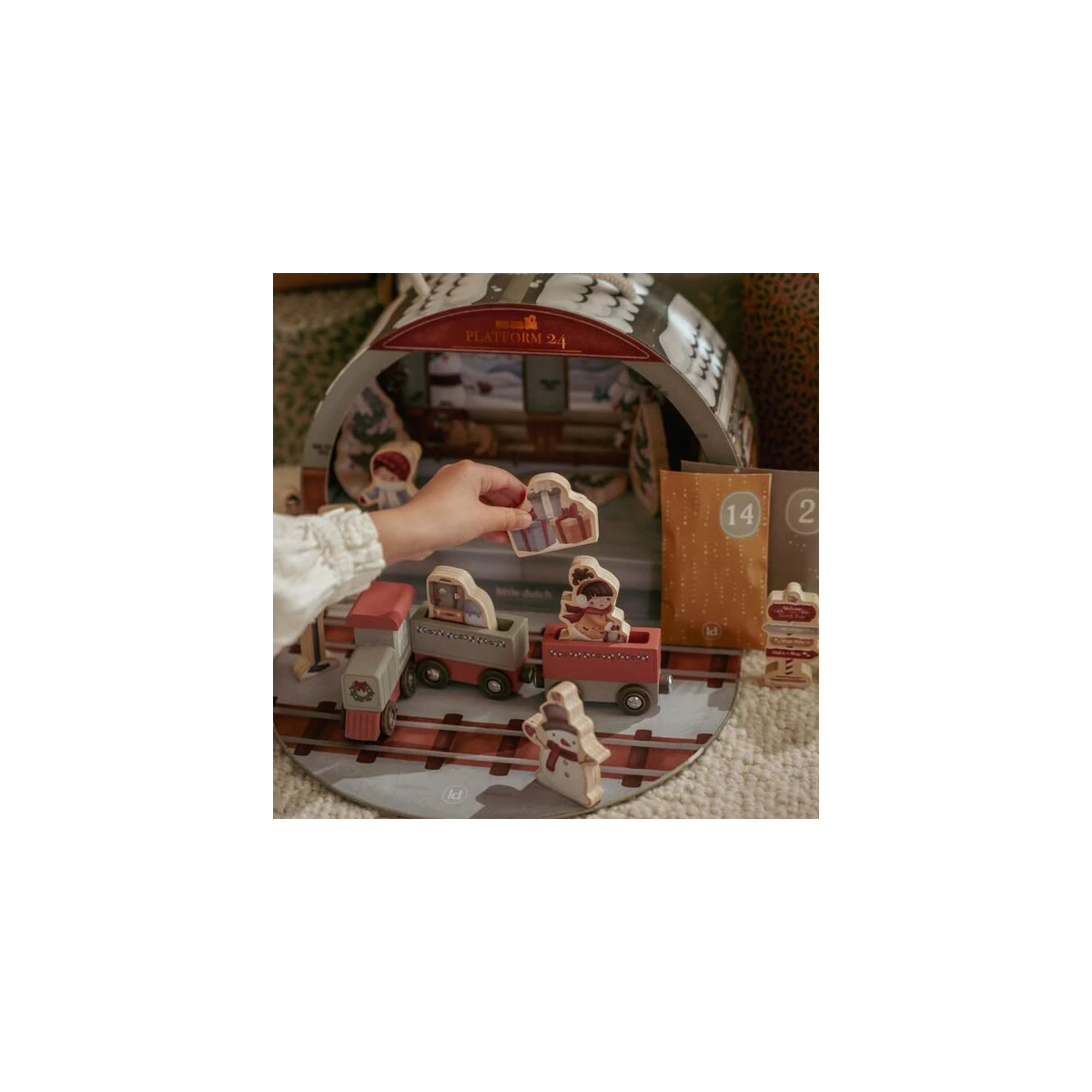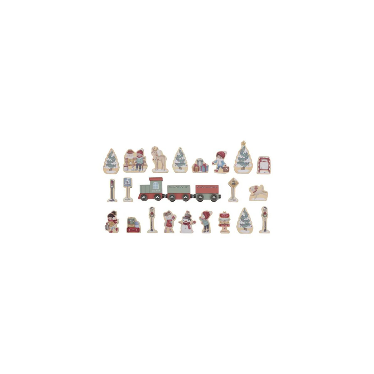 Il calendario dell’Avvento con trenino in legno trasforma l’attesa del Natale in un percorso di gioco e meraviglia. Dietro ogni casellina si nasconde un piccolo elemento che, giorno dopo giorno, compone una splendida pista ferroviaria completa di trenino e accessori.