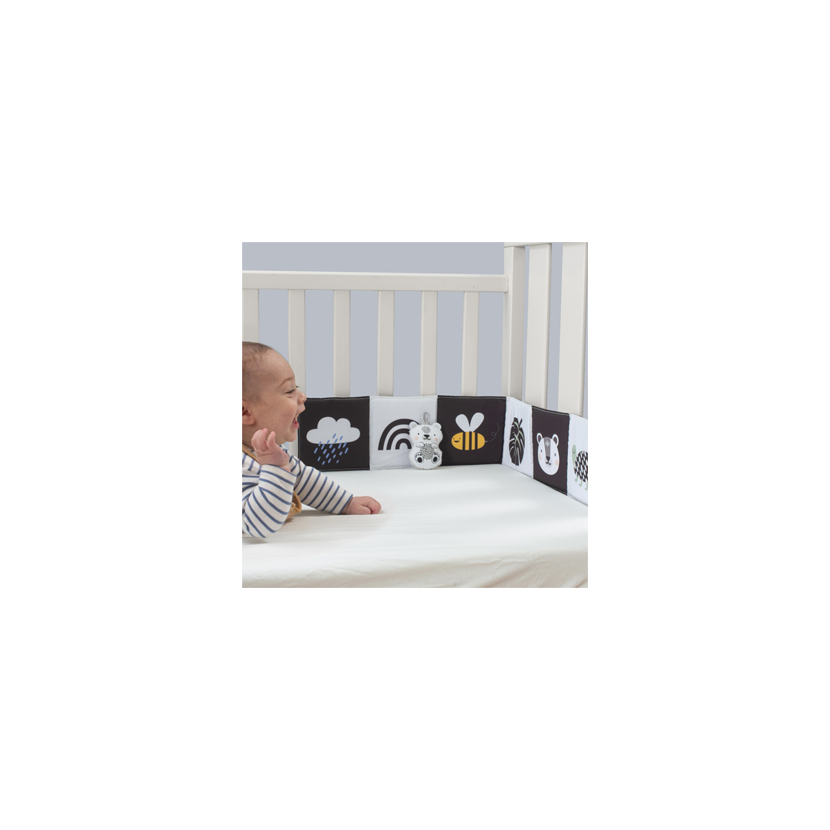 - Stimola la vista e la motricità fine con immagini ad alto contrasto