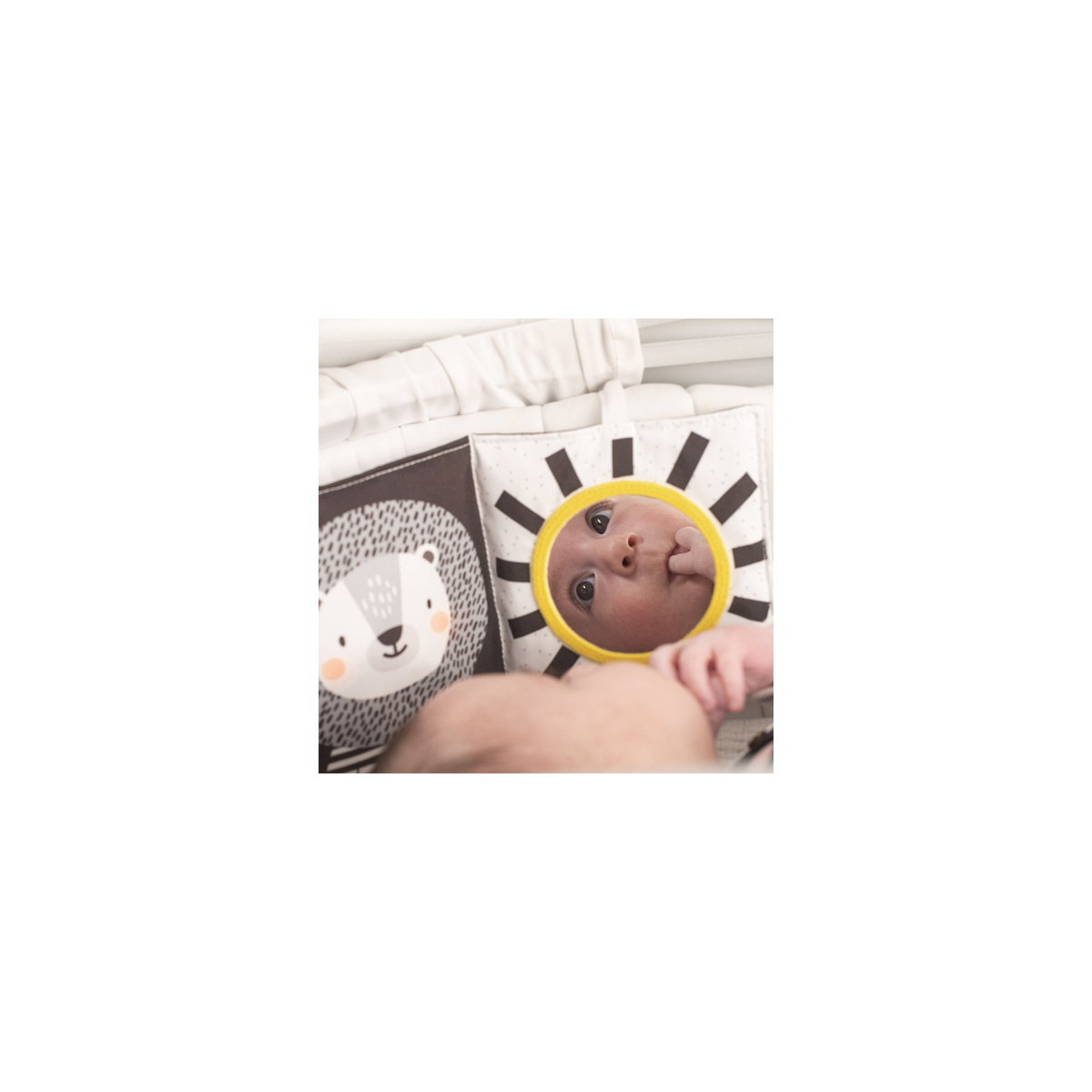 Questo libro morbido bifacciale in bianco e nero è perfetto per i neonati, offrendo un'esperienza sensoriale ricca grazie a pagine fruscianti e al simpatico giocattolo Libby il cucciolo. Le illustrazioni ad alto contrasto della collezione Savannah stimolano la vista dei più piccoli, mentre le diverse texture sensoriali, come lo specchietto sicuro per il bambino, offrono un'occasione unica per sviluppare i sensi e la motricità fine. Ideale per i primi mesi di vita, il libro è pensato per accompagnare i momenti di gioco in diverse posizioni: durante il tummy-time, nel passeggino o nella culla. Leggero e facile da piegare, è perfetto per le famiglie che amano portare con sé giochi che favoriscano lo sviluppo emotivo e cognitivo del loro bambino.
