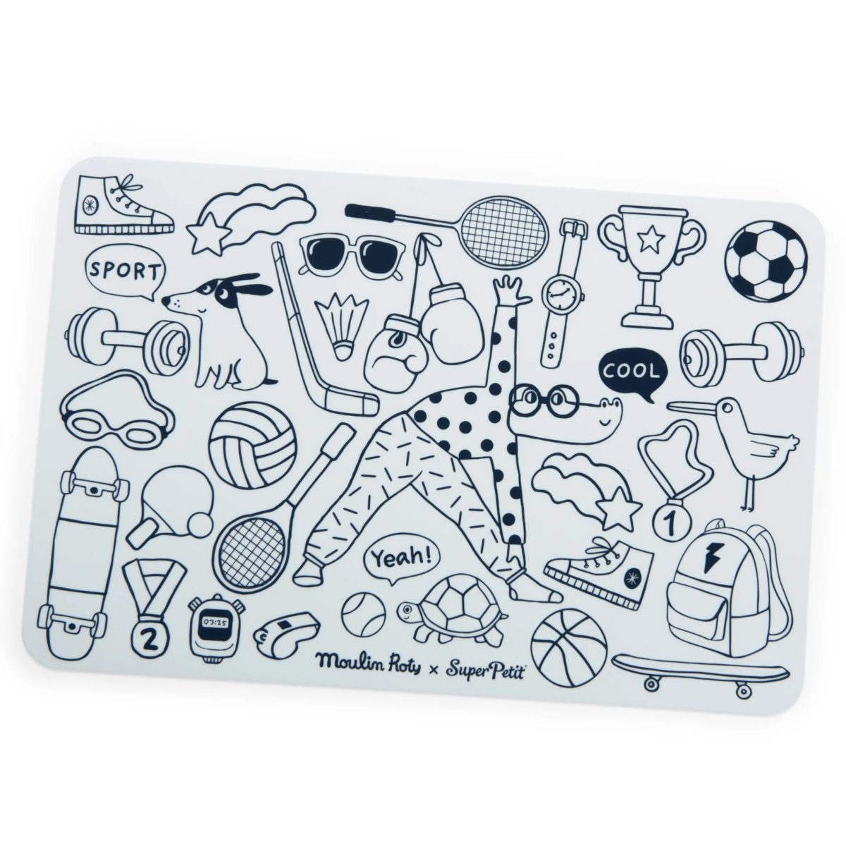 Mini tovaglietta in silicone da colorare con pennarelli Sport