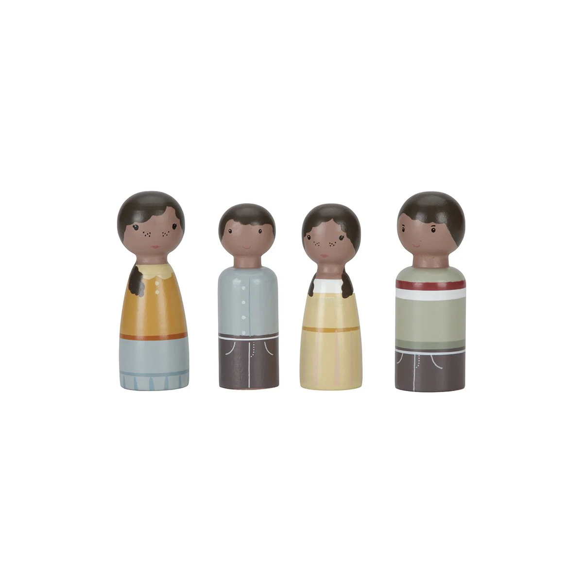 Completa la tua casa delle bambole Little Dutch con il set famiglia EVI! La confezione include quattro personaggi in legno a forma di peg dolls: papà, mamma, figlio e figlia.