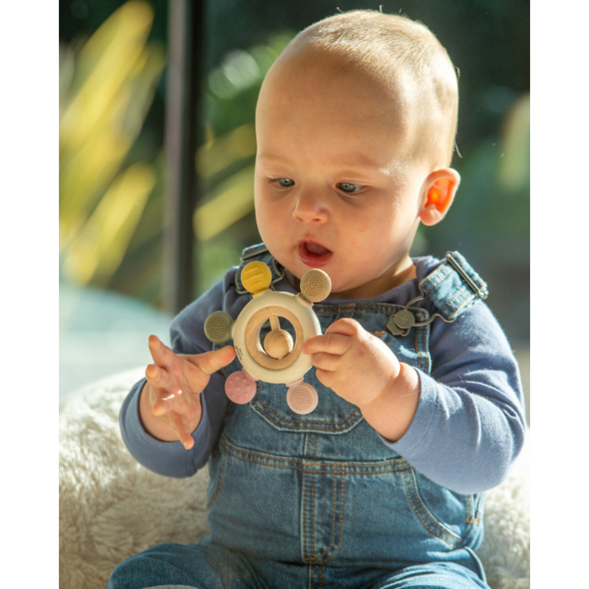 Il design leggero e maneggevole è pensato per le piccole mani, che possono afferrare, scuotere e scoprire in autonomia. La parte in legno può essere rimossa facilmente per una pulizia accurata, garantendo sempre un utilizzo sicuro e igienico. Un piccolo alleato che accompagna il tuo bambino nel sollievo dalla dentizione e nelle prime scoperte sensoriali.