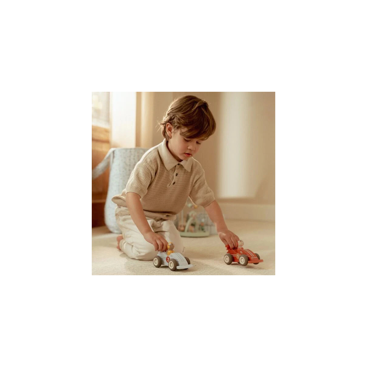Velocità e divertimento assicurati! Il set di Macchinine Pullback permette ai bambini di far correre le auto semplicemente tirandole indietro e rilasciandole: osserva come sfrecciano verso il traguardo! Ogni macchinina è dotata di un simpatico conducente a forma di omini in legno, intercambiabile per giochi di ruolo ancora più divertenti. La costruzione robusta in legno e le ruote in gomma garantiscono una corsa fluida su qualsiasi superficie, stimolando coordinazione, motricità fine e fantasia. Perfetto per piccoli appassionati di gare e corse!
