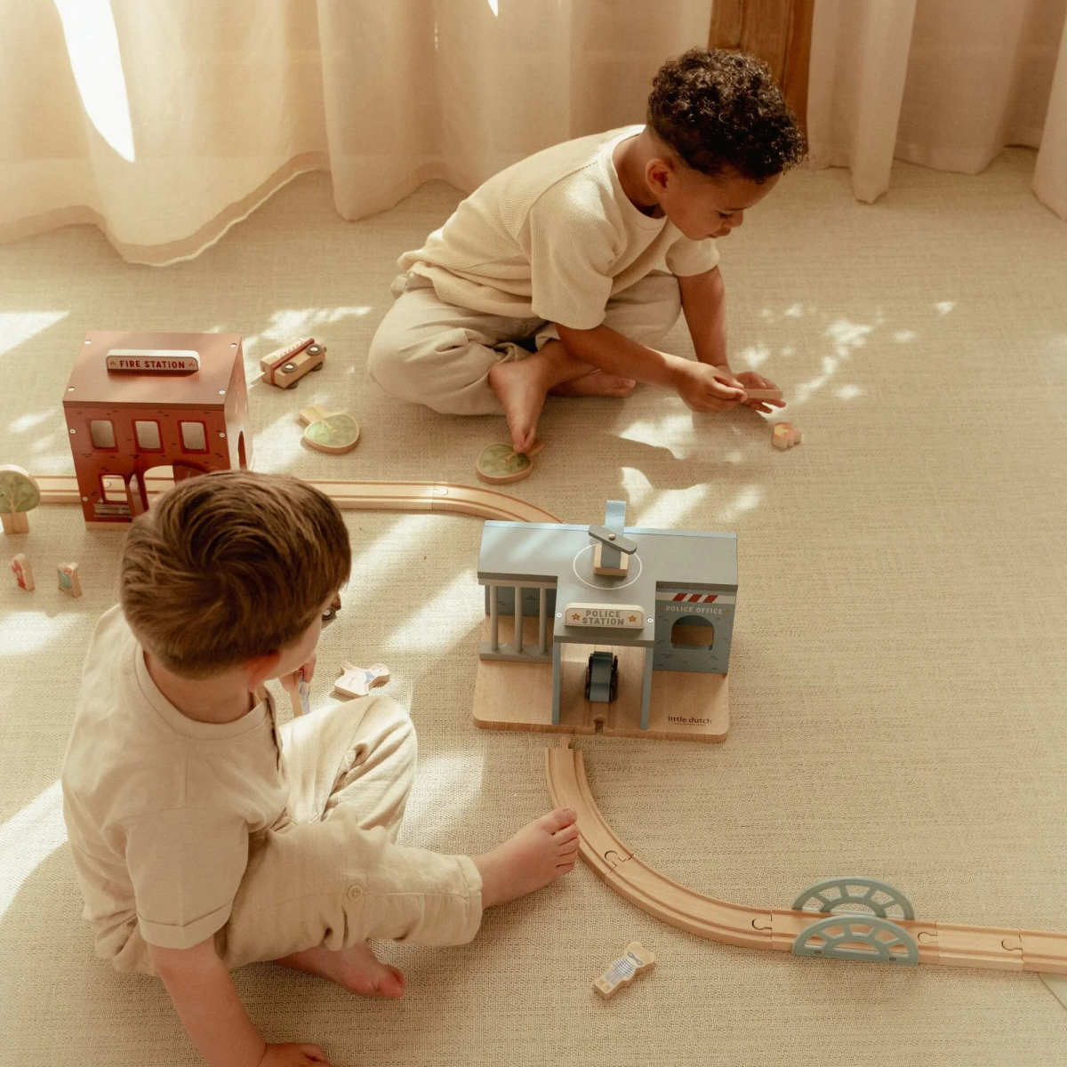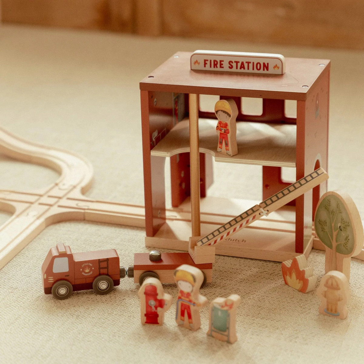 La caserma dei pompieri in legno rossa è il centro operativo perfetto per vivere emozionanti missioni di soccorso. Con le porte apribili e la classica asta da pompieri, i bambini possono scendere rapidamente per saltare sul camion dei pompieri e correre a spegnere gli incendi. Il set include pompieri, fiamme e un bidone in fiamme, permettendo di ricreare situazioni realistiche e divertenti. Robusto e sicuro, questo gioco stimola il gioco simbolico e di ruolo, la creatività e la collaborazione tra bambini. Perfetta da sola o in combinazione con il Little Dutch Train Track XL, offre infinite possibilità di avventura in città. Un compagno di gioco pensato per sviluppare coordinazione, immaginazione e capacità sociali.