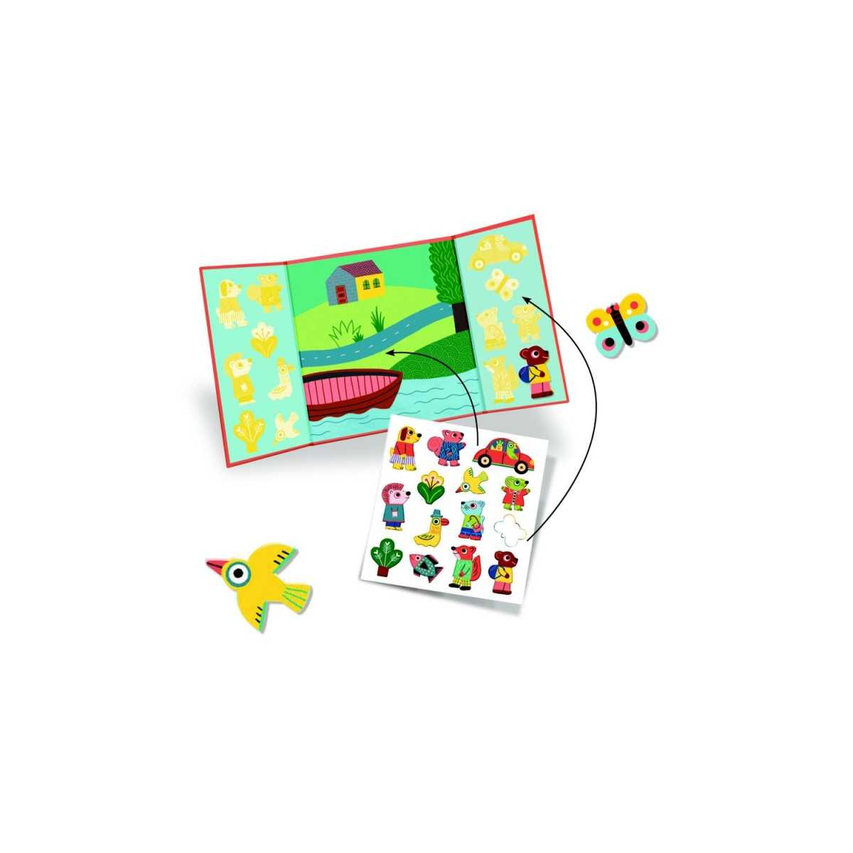 Il set Stick & Love Animali è un kit creativo pensato per bambini a partire dai 18 mesi, perfetto per avvicinarsi al mondo dell’arte e dell’esplorazione visiva in modo semplice e divertente. Il kit contiene scenari illustrati su cui applicare adesivi rimovibili raffiguranti vari animali. I bambini possono posizionare, spostare e riposizionare gli adesivi tutte le volte che vogliono, inventando storie e ambientazioni diverse ogni volta. Grazie a questa flessibilità, il gioco non si esaurisce dopo un uso: ogni sessione diventa un’occasione per raccontare, esplorare e sperimentare. Il formato compatto facilita l’uso a tavolo o a terra e la conservazione ordinata.