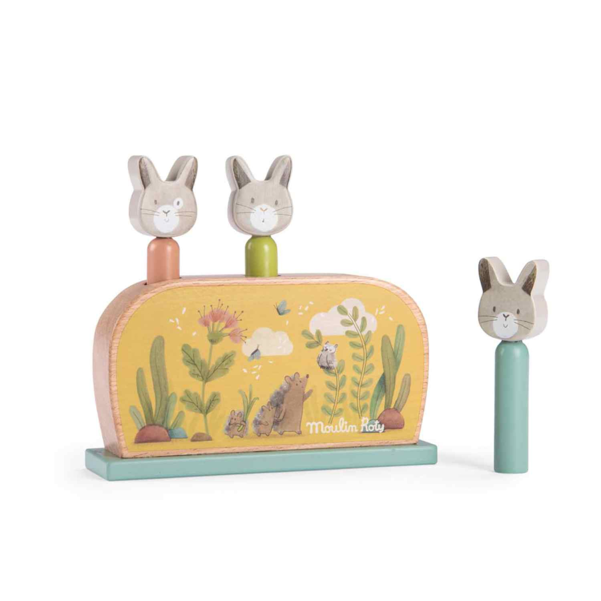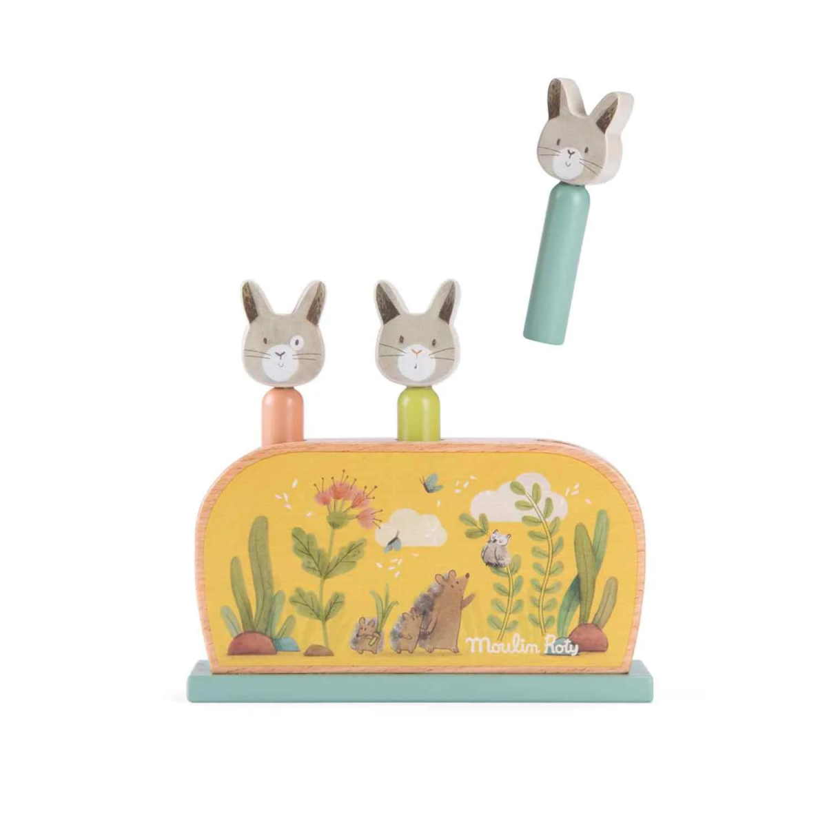 Tre piccoli coniglietti e un solo obiettivo: far ridere i più piccoli con i loro salti imprevedibili. Il pop up salta in legno è un gioco semplice e irresistibile che unisce sorpresa, curiosità e divertimento.
