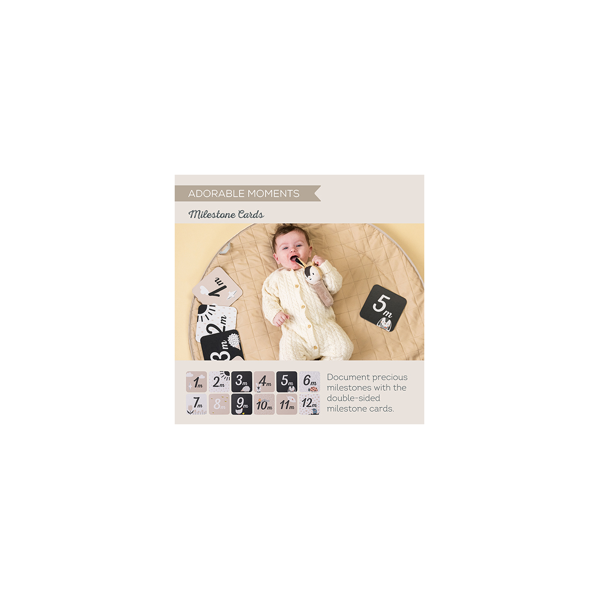 Il set include anche 6 cards mensili fronte retro per documentare i momenti più importanti della crescita, creando ricordi preziosi e perfetti da fotografare.