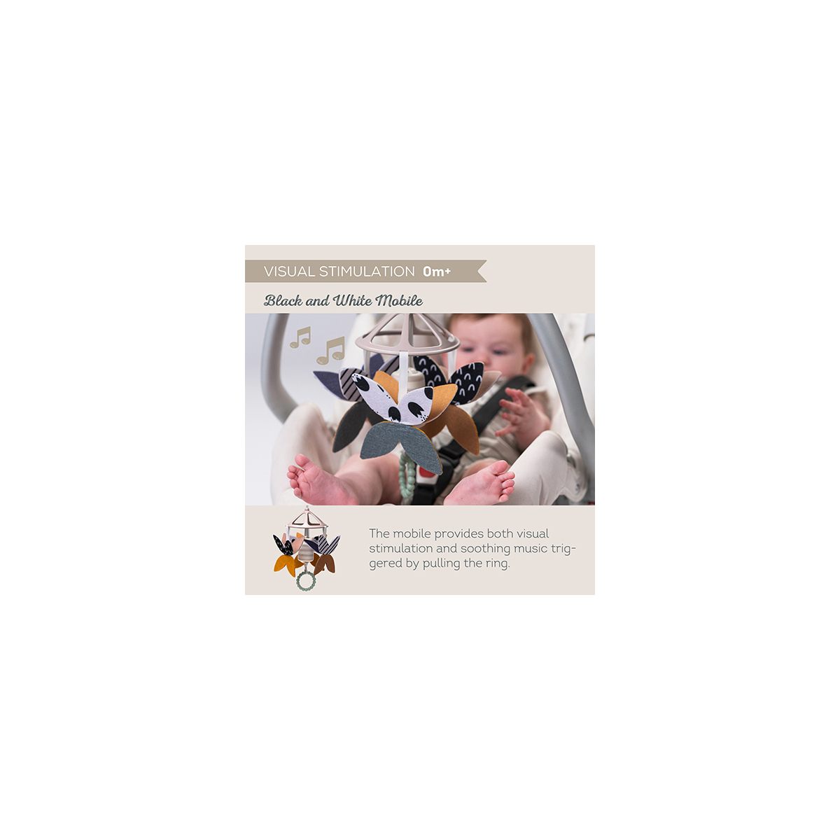 - Stimola la vista grazie ai contrasti bianco e nero,