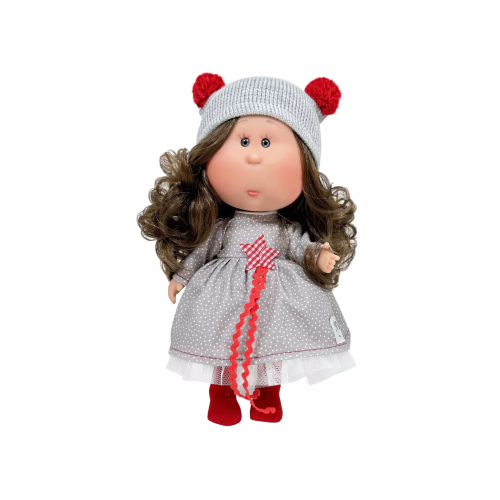 Bambola in vinile LITTLE MIA XMAS - Bimba con capelli castani ricci Lunghi