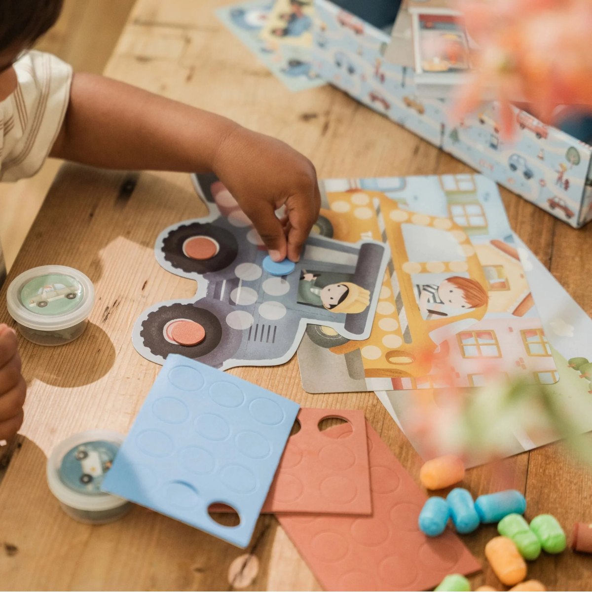 - Contenuto: carta, adesivi, pastelli, colori, foam clay, timbri.