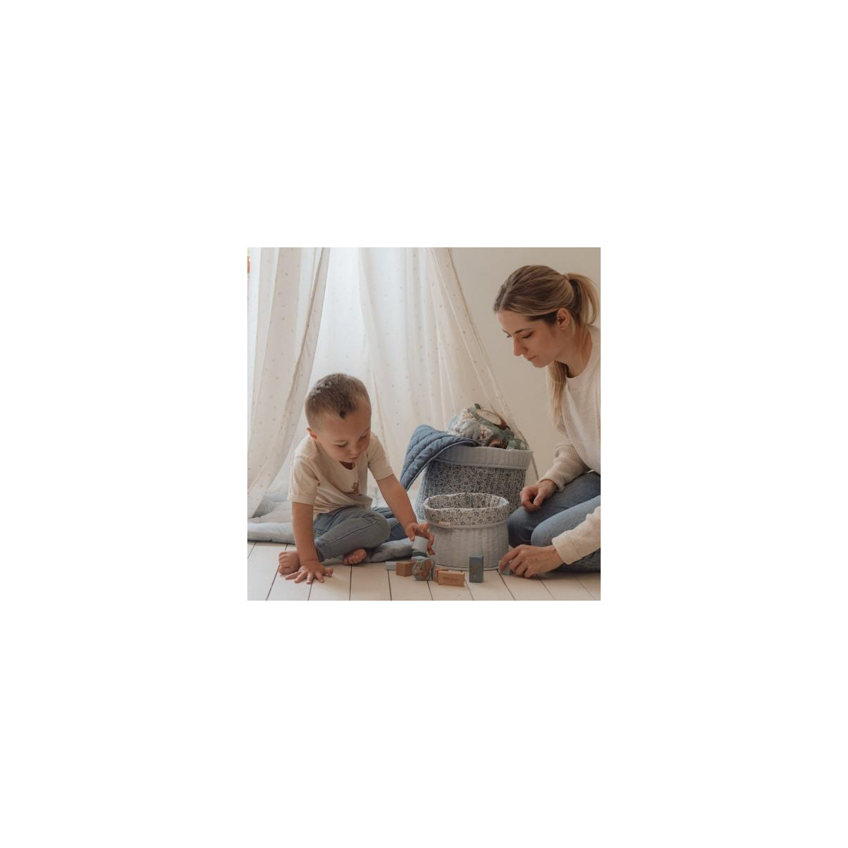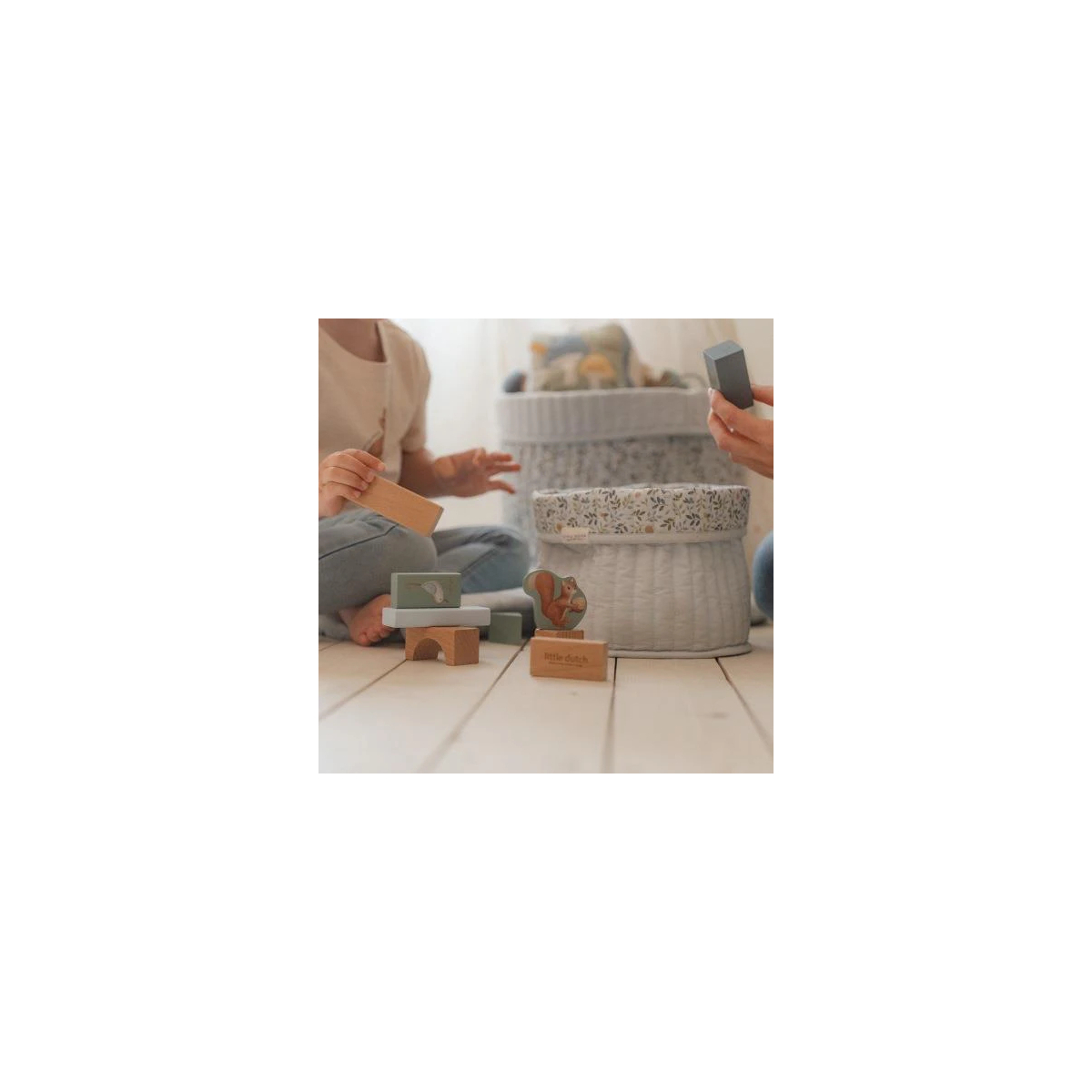 Un barile pieno di costruzioni in legno pensato per dare forma all’immaginazione, un blocco alla volta. Impilando, combinando e spostando i pezzi, i bambini possono creare un bosco popolato da foglie, bacche, pigne e piccoli insetti, oppure inventare un villaggio dove gli animali del bosco vivono e giocano insieme. Ogni costruzione nasce dalle mani e dalla fantasia, senza istruzioni rigide, lasciando spazio alla creatività pura.