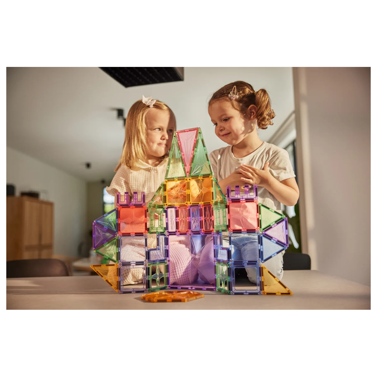 Le diverse forme aiutano a riconoscere figure geometriche e a comprendere concetti spaziali, mentre il sistema magnetico rende le costruzioni stabili e facili da assemblare. Cresce con il bambino dai 3 anni in su: dalle prime strutture semplici fino a progetti più complessi negli anni successivi. Può essere ampliato con altri set compatibili e utilizzato anche su superfici magnetiche verticali, per sperimentare nuove prospettive di gioco.