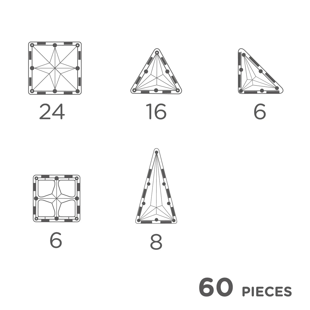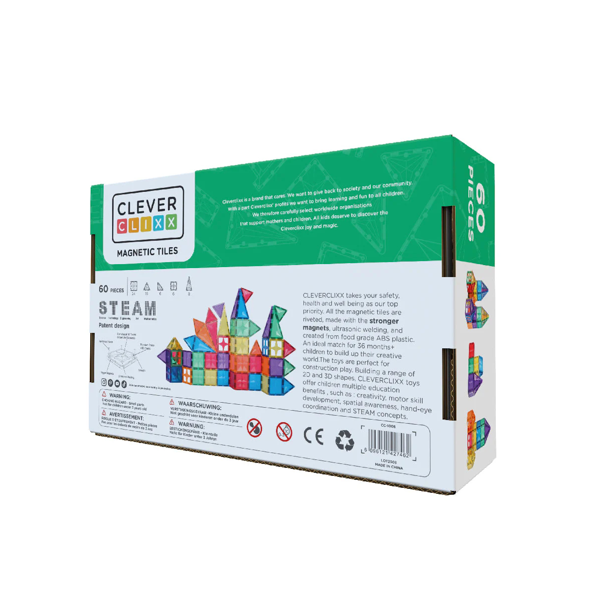 Un set completo di costruzioni magnetiche pensato per dare forma alle idee più ambiziose. Con 60 pezzi in colori intensi e vivaci, questo pack è perfetto per iniziare a esplorare il mondo delle costruzioni tridimensionali e lasciarsi sorprendere da ciò che si può creare: torri, case, razzi, animali fantastici o strutture geometriche sempre più elaborate.