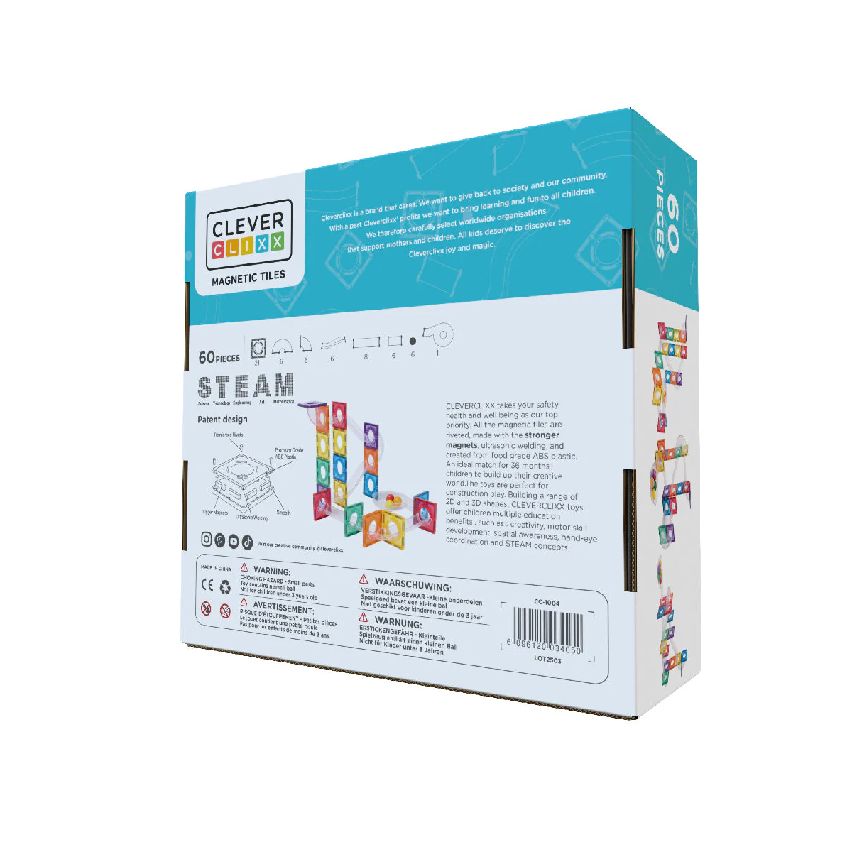 Perfetto come espansione o come base per un progetto completo, questo set stimola creatività, pensiero logico e coordinazione. È un gioco open-ended: non esiste un unico percorso giusto, ma infinite combinazioni possibili. Cresce con il bambino dai 3 anni in su, accompagnando lo sviluppo delle competenze STEAM in modo pratico e divertente. Si può costruire anche su superfici magnetiche verticali, aggiungendo un ulteriore livello di sfida e sperimentazione.