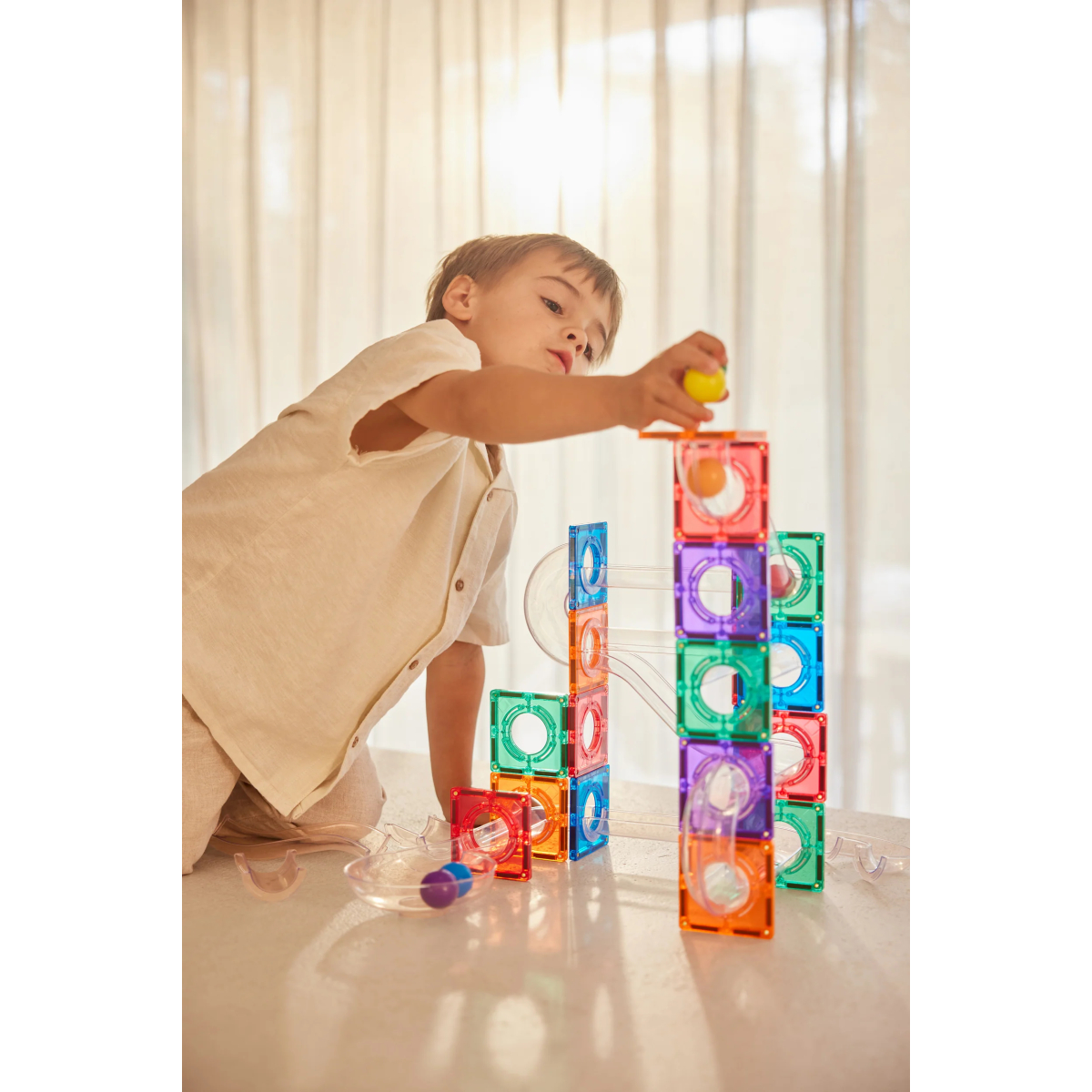 Un set pista per biglie magnetica pensato per chi ama vedere le proprie costruzioni prendere vita. Con 60 pezzi tra tubi, curve e raccordi, questo pack permette di creare percorsi spettacolari dove le palline scendono, curvano, accelerano e sorprendono ad ogni passaggio. Ogni costruzione diventa un piccolo laboratorio di fisica in miniatura, dove gravità e inclinazione fanno la loro parte.