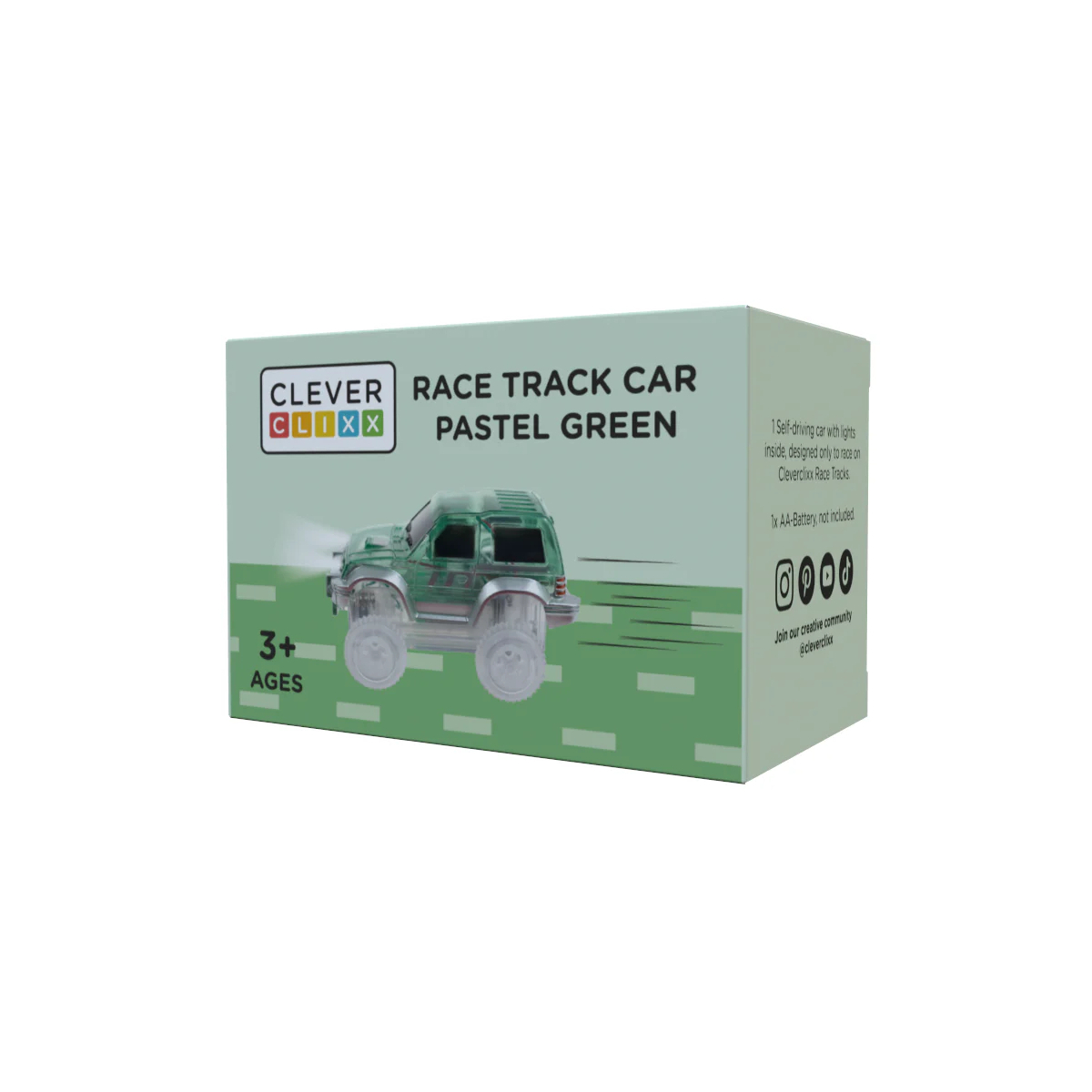 Un’auto pensata per rendere ancora più dinamica e coinvolgente la pista magnetica. Basta inserire una batteria AA e il veicolo parte in autonomia, pronto a sfrecciare lungo il tracciato con i fari anteriori che si illuminano durante il movimento. Un piccolo dettaglio che aggiunge realismo e sorpresa a ogni gara.