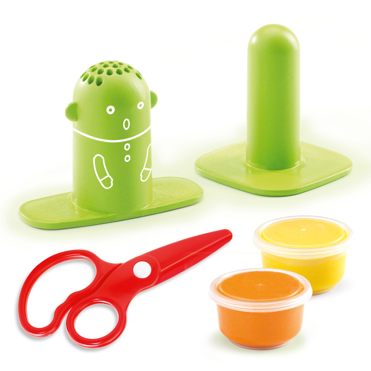 - 2 barattoli di plastilina (arancione e gialla, 35 g ciascuno).