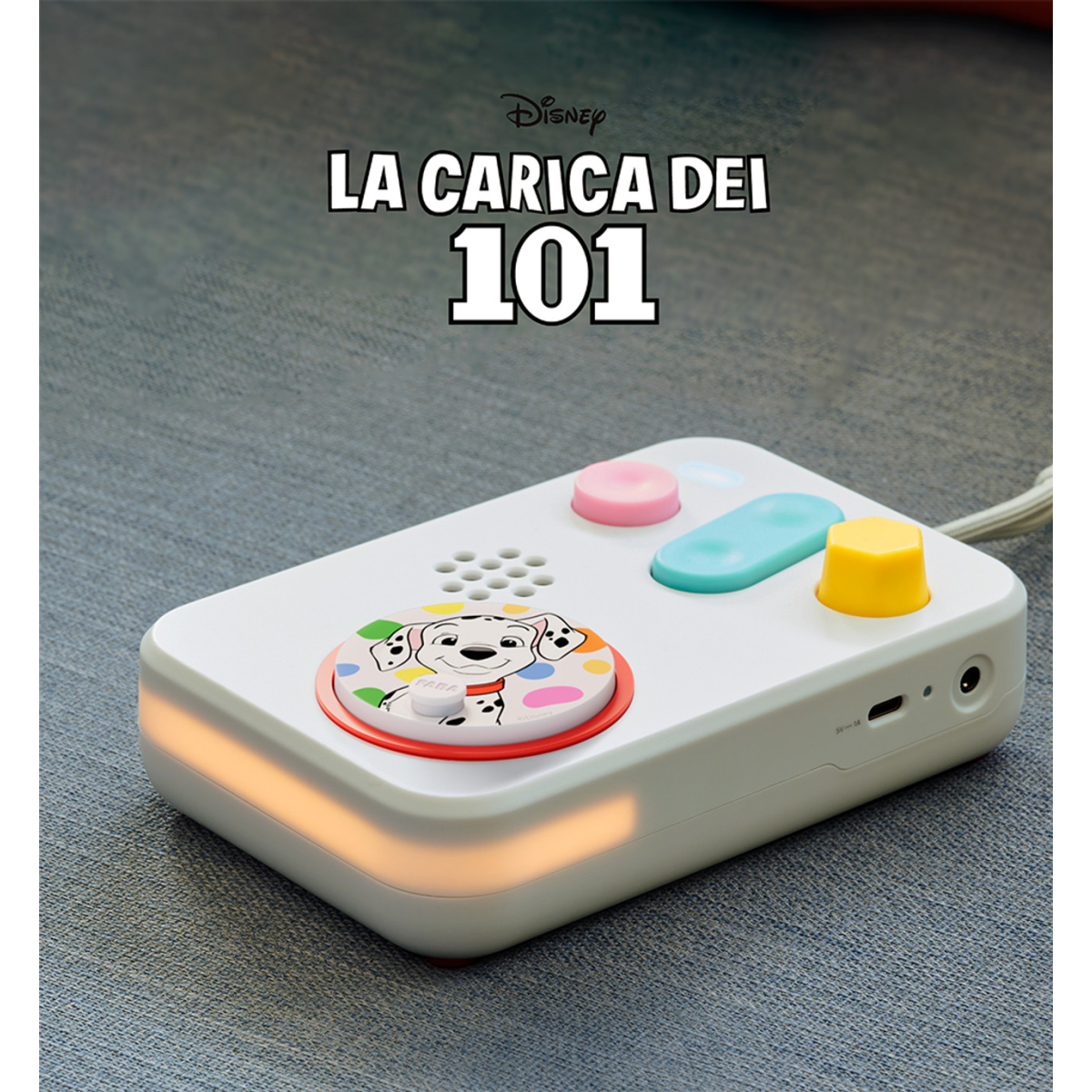 “Il Coraggio dei Dalmatini” è un racconto sonoro tratto dal film Disney “La Carica dei 101”, pensato per bambini dai 5 anni in su. La narrazione monovoce è arricchita da musiche ed effetti sonori che accompagnano l’avventura di Pongo e Peggy nel tentativo di salvare i loro cuccioli rapiti da Crudelia De Mon, insieme a una squadra di salvataggio molto speciale. Il racconto dura circa 35 minuti e propone temi profondi come l’amore familiare, il coraggio e la lealtà. Il disco è compatibile con il sistema Raccontastorie FABA, per un ascolto semplice, intuitivo e senza display.