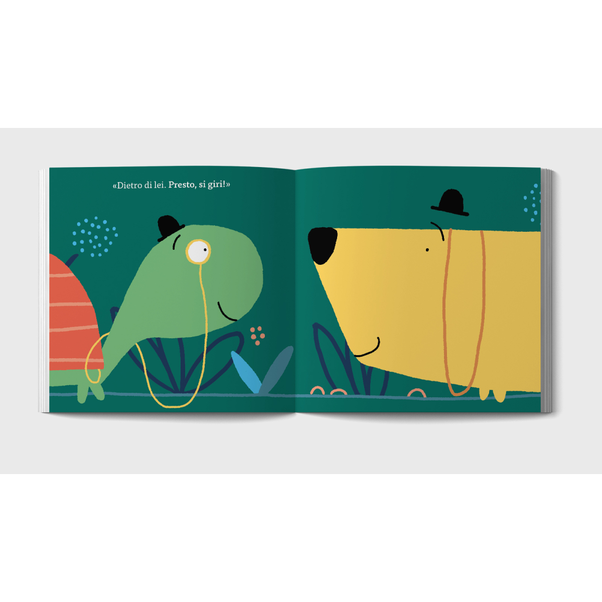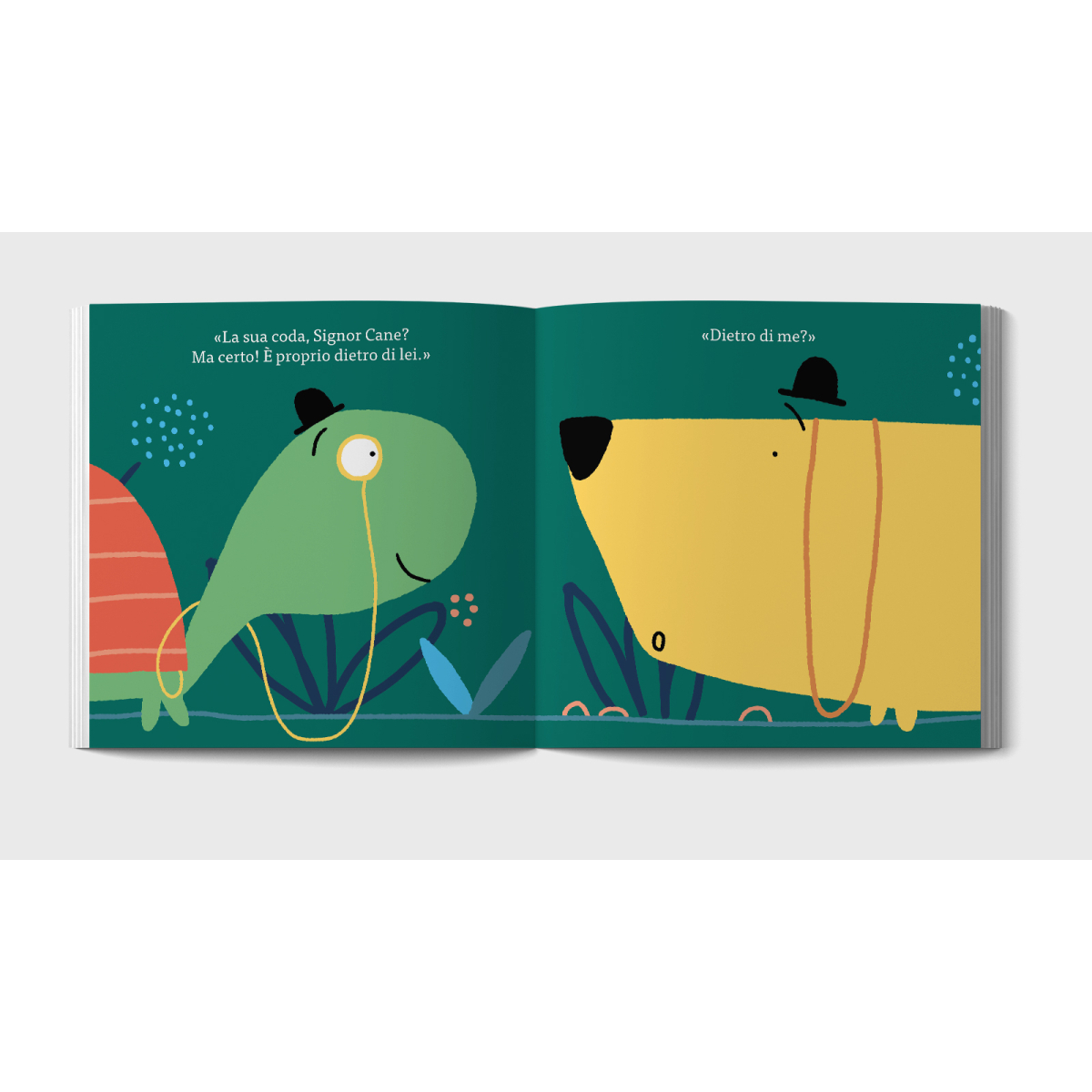 Il Signor Cane è alle prese con un problema urgente: dov’è finita la sua coda? Nonostante le rassicurazioni del Signor Tartaruga — «Dietro di lei» — il nostro protagonista si gira, si gira ancora… e non la trova mai. Questa storia comica e ben calibrata gioca con la prospettiva e l’ironia quotidiana: ciò che sembra ovvio non lo è per tutti, e l’attesa diventa risata. Le illustrazioni misurate, il ritmo incalzante e il dialogo semplice portano grandi e piccoli in un gioco scenico del “vedo-non vedo” e rendono la lettura condivisa un momento di complicità e divertimento.