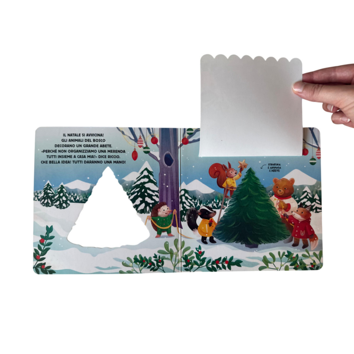 Nel bosco tutto si prepara per la festa: luci soffuse, biscotti caldi, rami profumati e amici pelosi che si radunano intorno a un grande tavolo. “Il Natale. Scopri gli odori” invita i bambini a sollevare alette, strofinare e annusare, trasformando ogni pagina in un piccolo gioco sensoriale. Le illustrazioni avvolgenti raccontano una merenda natalizia con gli animali del bosco, mentre l’interazione tattile e olfattiva rafforza il coinvolgimento e la scoperta. Il formato cartonato, ideale fin dai due anni, è pensato per mani curiose che vogliono toccare, annusare e ripetere. Un’esperienza perfetta per creare un momento caldo di lettura condivisa, dove l’odore di vaniglia, pino e spezie diventa ponte tra adulti e piccoli lettori.