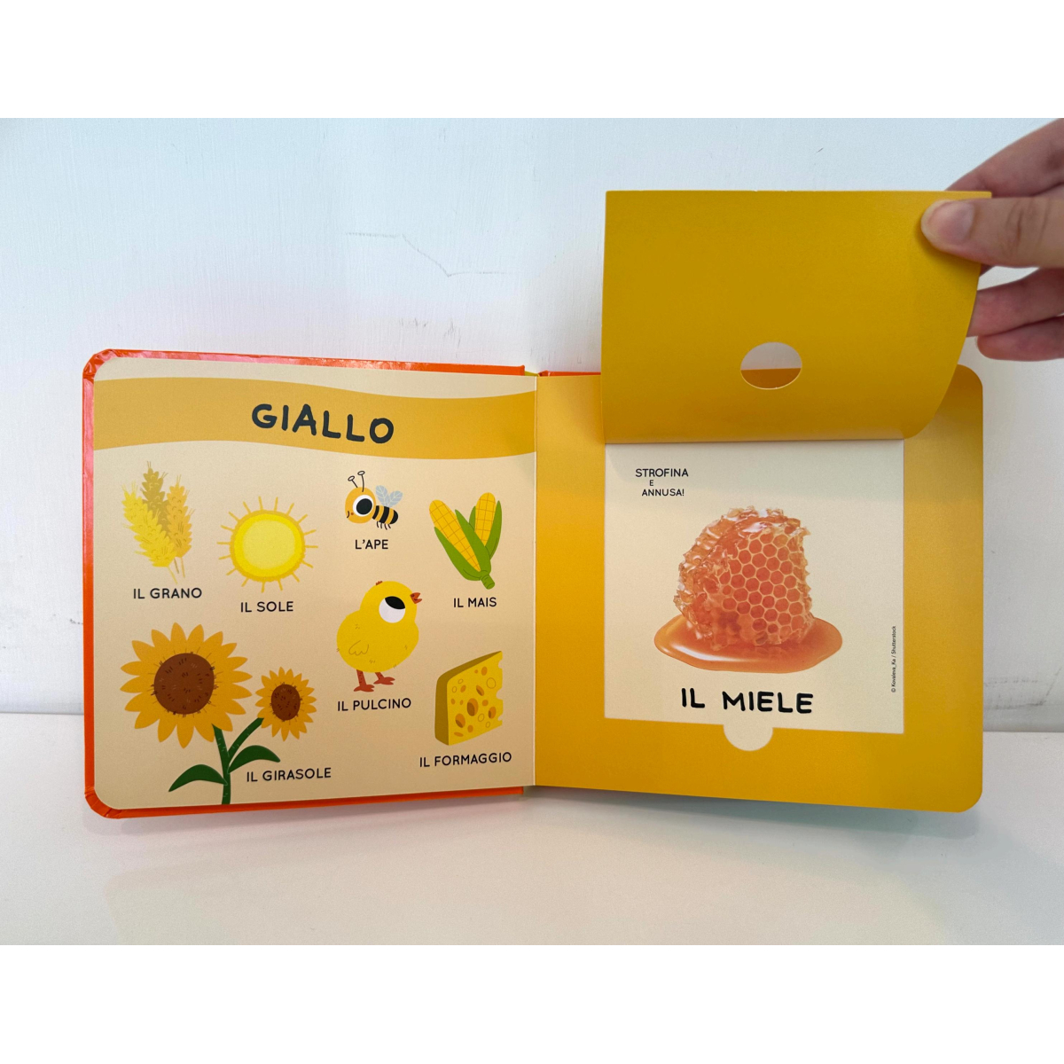 Nelle pagine di questo albo profumato, ogni pagina ti invita a infilare il naso (e le dita) tra fieno, frutta, animali della fattoria e… profumi a sorpresa. “La fattoria. Il mio libro degli odori e dei colori” propone un formato cartonato compatto, pensato per i più piccoli, che in un solo tocco scoprono quale contadino ha appena raccolto, qual frutto è succoso e che animale pascola dietro l’aletta. I colori sono semplici e forti e le immagini immediate, per aiutare la lettura condivisa e l’osservazione curiosa dei bambini. L’interazione olfattiva stimola la memoria sensoriale e il linguaggio: «Annusa… che profumo senti? Di mele? Di fieno?». Un modo sereno e giocoso per avvicinare i bambini alla lettura, ai colori e agli odori del mondo, trasformando il semplice racconto in un rito sensoriale quotidiano.