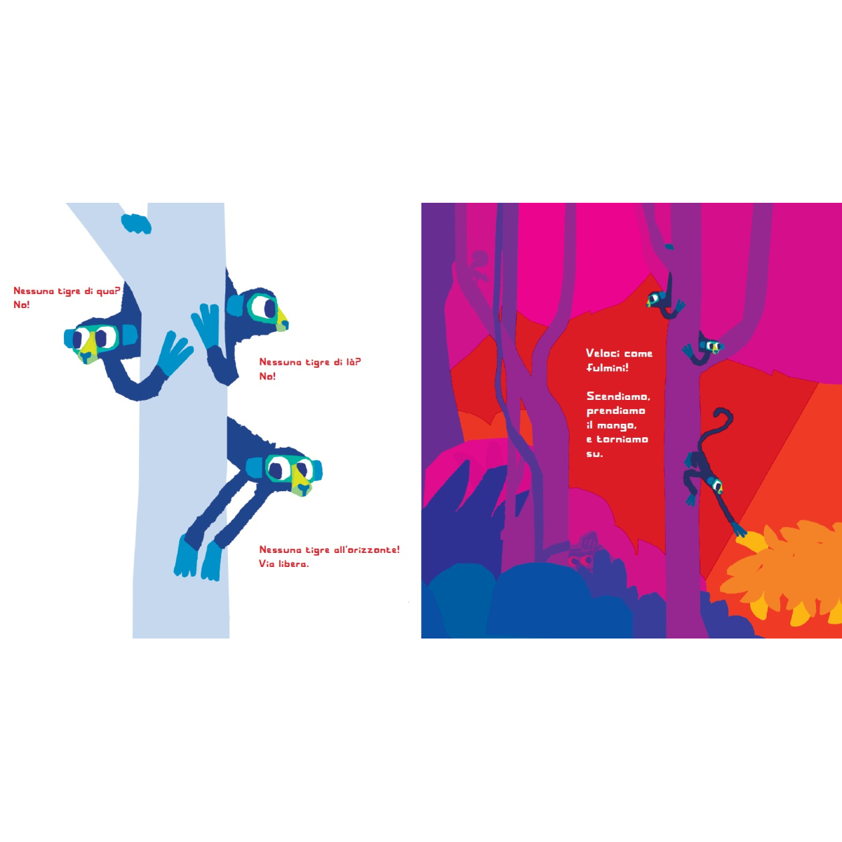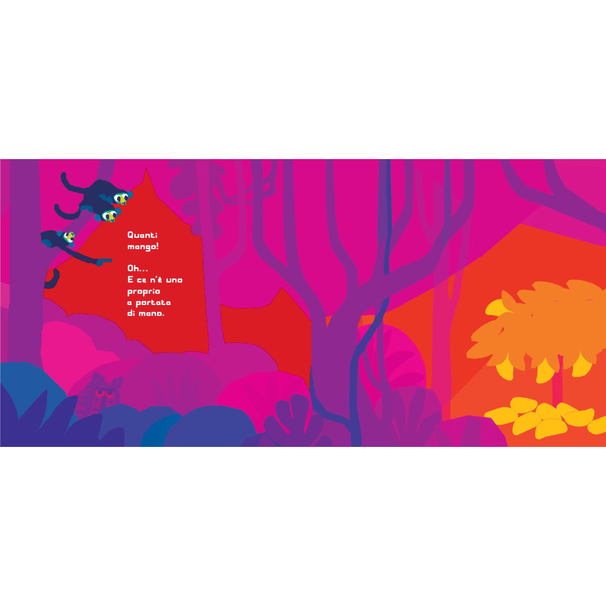 Sedute su un ramo alto di un albero nella foresta, tre scimmiette ricevono un’unica raccomandazione: «Fate quello che volete, ma NON avvicinatevi all’albero di mango. È pieno di tigri lì sotto». Eppure… mango! In Forse… si gioca con il desiderio, la disobbedienza e un attimo di pausa prima che accada l’imprevisto. L’humour di Chris Haughton e il suo tratto dal ritmo visivo gentile trasformano una semplice azione in suspense leggera, perfetta per i bambini dai 3 anni in su. Le illustrazioni ampie, dai colori saturi, rendono ogni pagina un invito all’osservazione e al sorriso, mentre la trama solleva domande sul “perché non” e sul “e se provassimo?”. Un albo adatto per la lettura condivisa, per genitori che vogliono stimolare curiosità e autonomia in modo semplice e divertente.