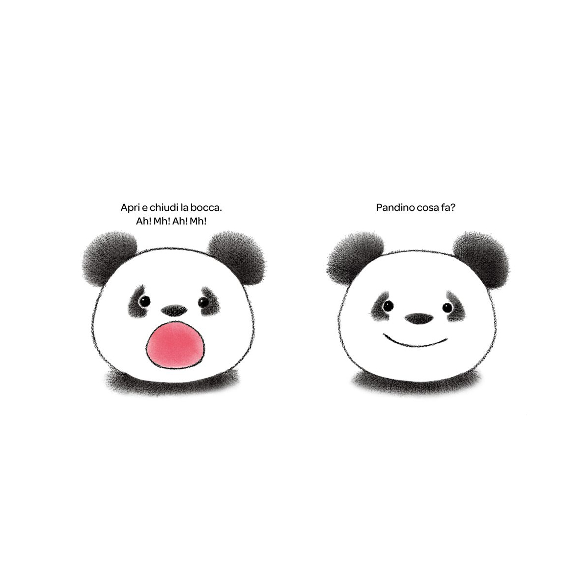 Il piccolo Pandino ama giocare con il corpo: gonfia le guance come uno scoiattolo, spalanca la bocca come un ippopotamo, imita l’elefante che allunga la proboscide… In “Pandino fa le facce” ogni gesto diventa parte del racconto, invitando il bambino non solo a leggere, ma a partecipare fisicamente. Le illustrazioni semplici e dai tratti chiari mostrano i movimenti del cucciolo e dell’animale che imita, rendendo il gioco accessibile anche ai più piccoli. Il formato cartonato (32 pagine) è adatto alle mani curiose e alle prime letture condivise. Ideale per bambini dai 0-3 anni, questo albo trasforma la lettura in un momento dinamico, divertente e di scoperta: «Quale faccia fai oggi?».