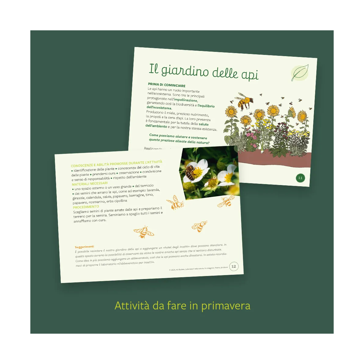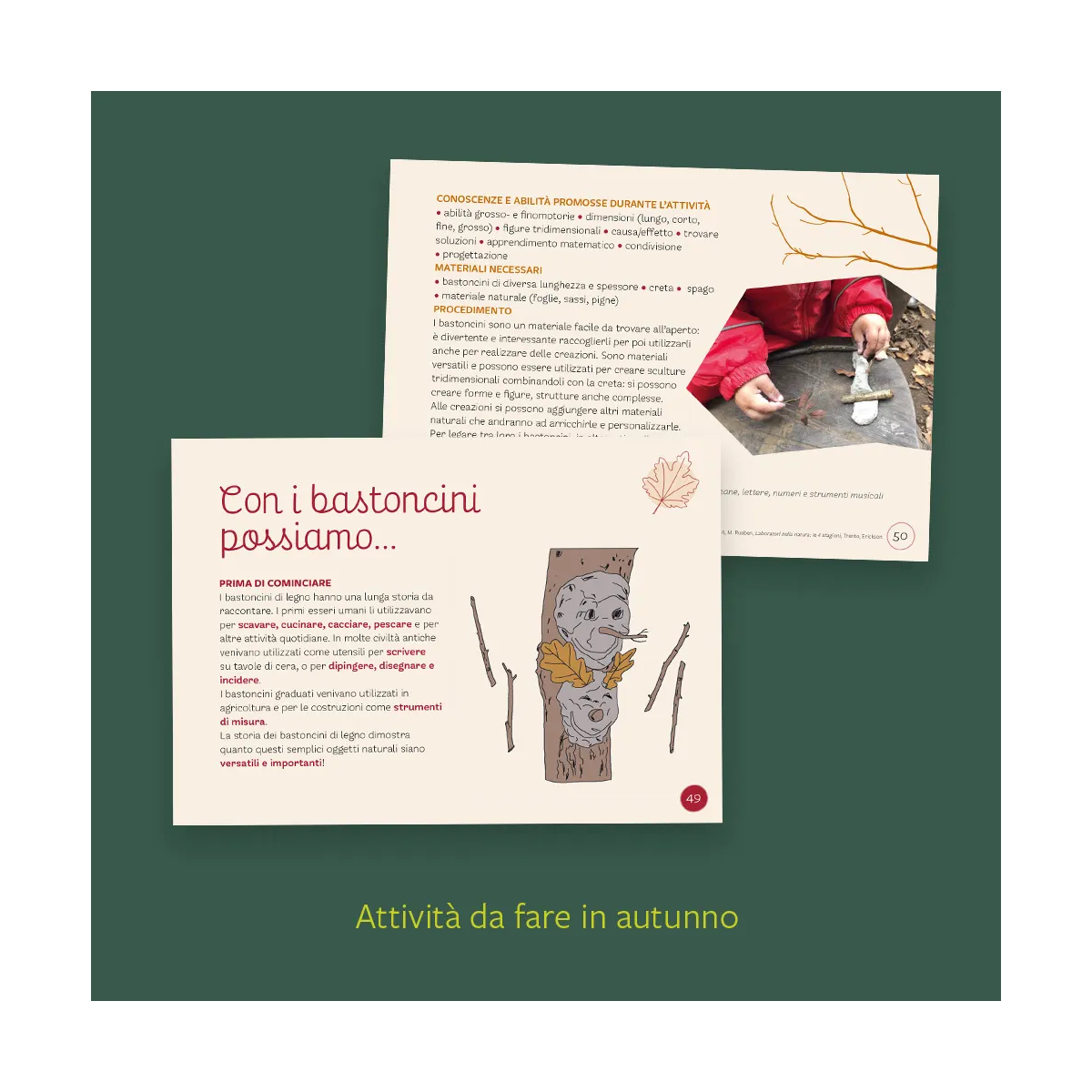 - Tematiche: natura; stagioni; materiali naturali; esplorazione sensoriale; didattica all’aperto; ambientazione scolastica