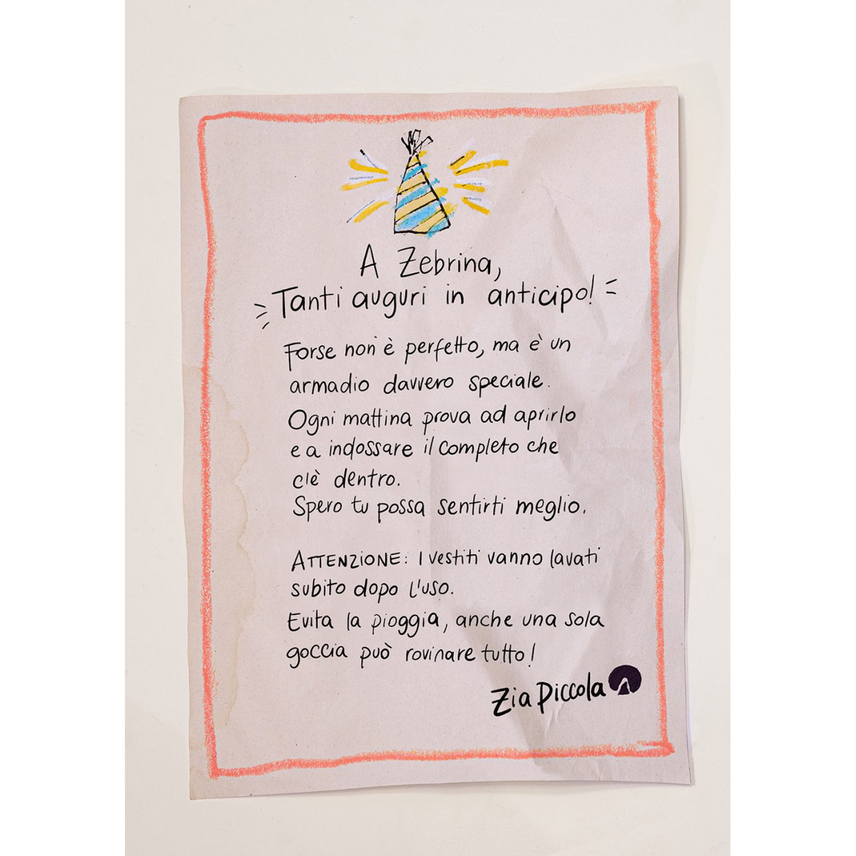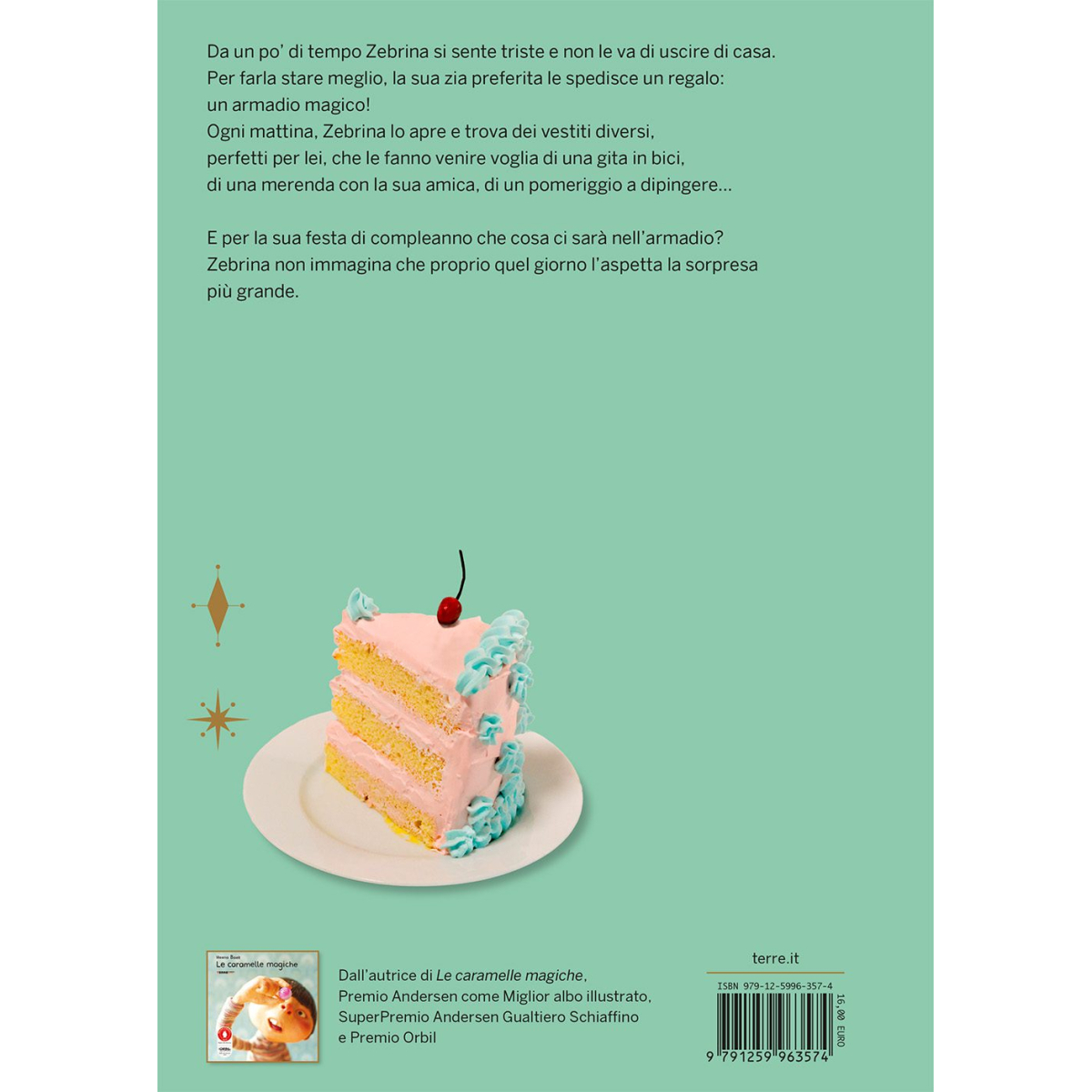 Zebrina non si sente bene. È triste, senza energia, come se i colori intorno a lei si fossero spenti. Per il suo compleanno, la zia le manda un regalo speciale: un guardaroba magico. Ogni mattina, dentro l’armadio appare un vestito diverso, perfetto per affrontare la giornata. Non sono semplici abiti, ma piccoli gesti di cura che avvolgono Zebrina come un abbraccio. Giorno dopo giorno, grazie a quei colori e a quella magia silenziosa, ritrova la voglia di uscire, di incontrare le amiche, di tornare a prendersi cura di sé. Con immagini suggestive e un tono delicato, questo albo racconta la fragilità e la rinascita con grande sensibilità. Una storia che parla di conforto, di affetto e della forza gentile che aiuta a ritrovare il proprio passo.