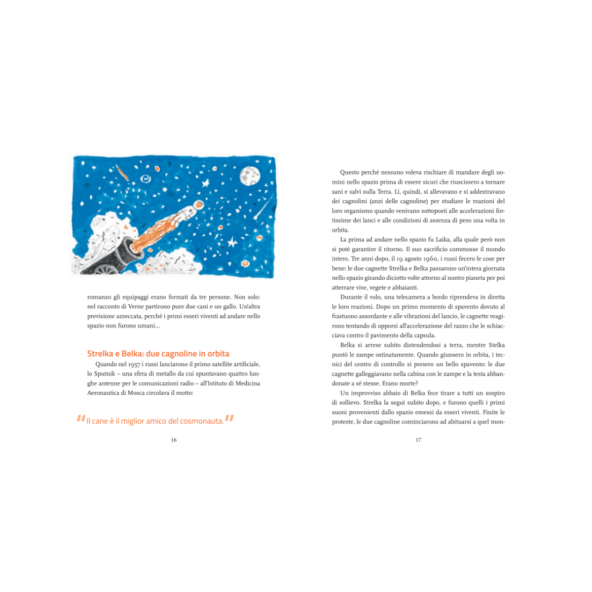 Chi ha inventato i razzi e le capsule spaziali? Come si diventa astronauta? Si può davvero vivere in orbita attorno alla Terra? E torneremo sulla Luna o metteremo piede su Marte? Questo libro di divulgazione accompagna i giovani lettori alla scoperta delle grandi imprese spaziali attraverso racconti appassionanti e ricchi di curiosità. Dalle missioni di Yuri Gagarin fino alle esperienze di Samantha Cristoforetti, si entra nel dietro le quinte della conquista dello spazio tra aneddoti sorprendenti, imprevisti, tecnologia e coraggio. Scritto da due fisici e divulgatori che lavorano a stretto contatto con il mondo dell’astronautica, il volume unisce rigore scientifico e narrazione coinvolgente, arricchito da illustrazioni e fotografie a colori della NASA. Vincitore del Premio Nazionale “Un Libro per l’Ambiente” 2021, è una lettura che accende la curiosità e invita a guardare il cielo con occhi nuovi.