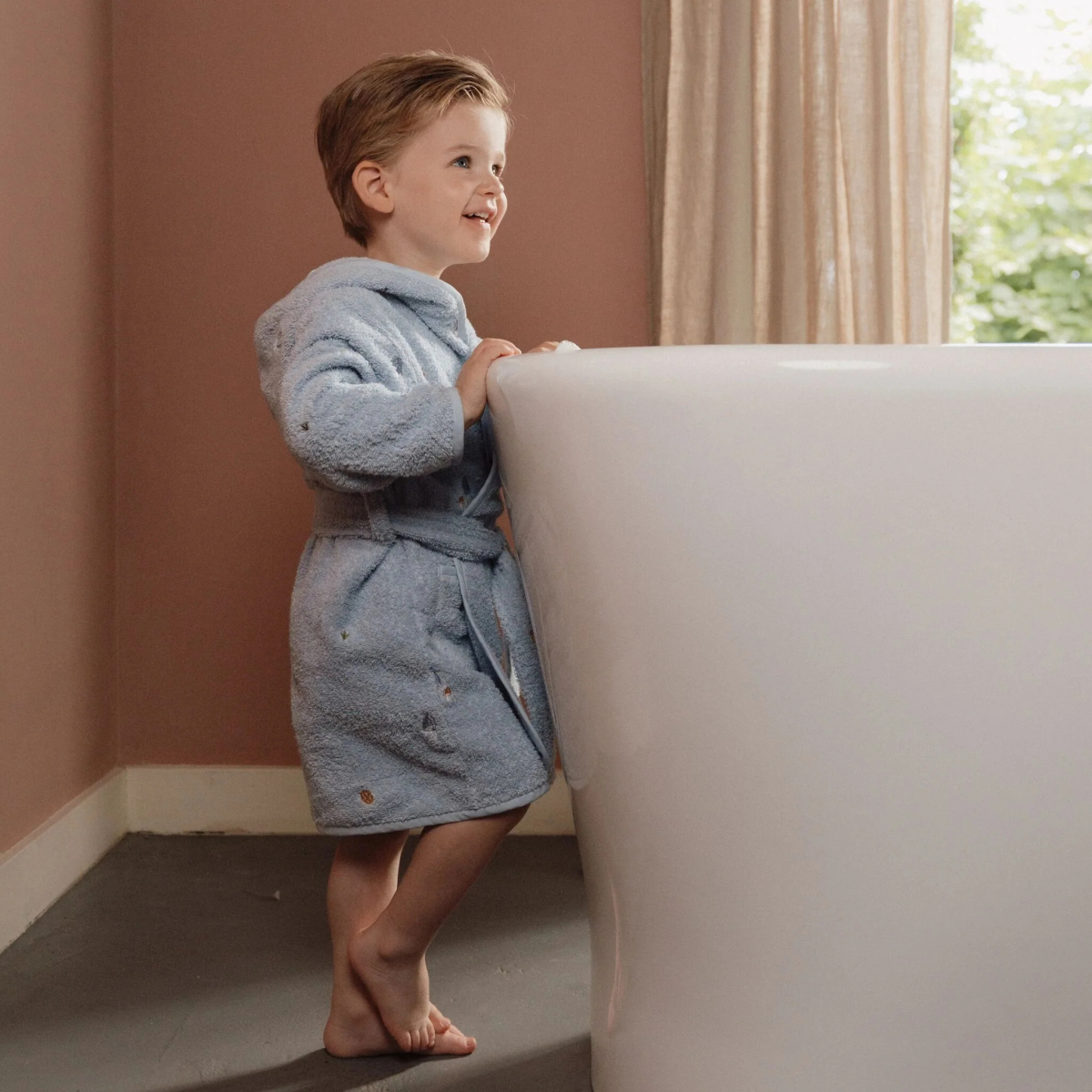 Un accappatoio morbido e avvolgente pensato per rendere ancora più dolci i momenti dopo il bagno. Realizzato in spugna di cotone biologico 100%, assorbe delicatamente l’umidità e mantiene il bambino al caldo, lasciandogli la libertà di muoversi senza sentirsi ingombrato. Dopo una giornata di giochi e scoperte, è il modo perfetto per rallentare e coccolarsi un po’.