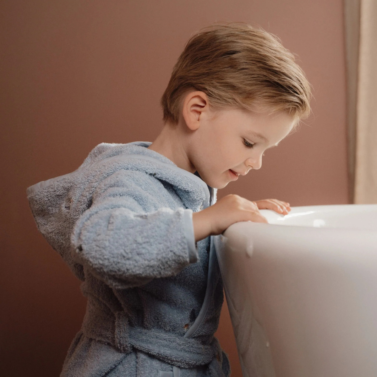 Un accappatoio che avvolge di morbidezza e rende ogni fine bagno un momento di calma, calore e coccole.