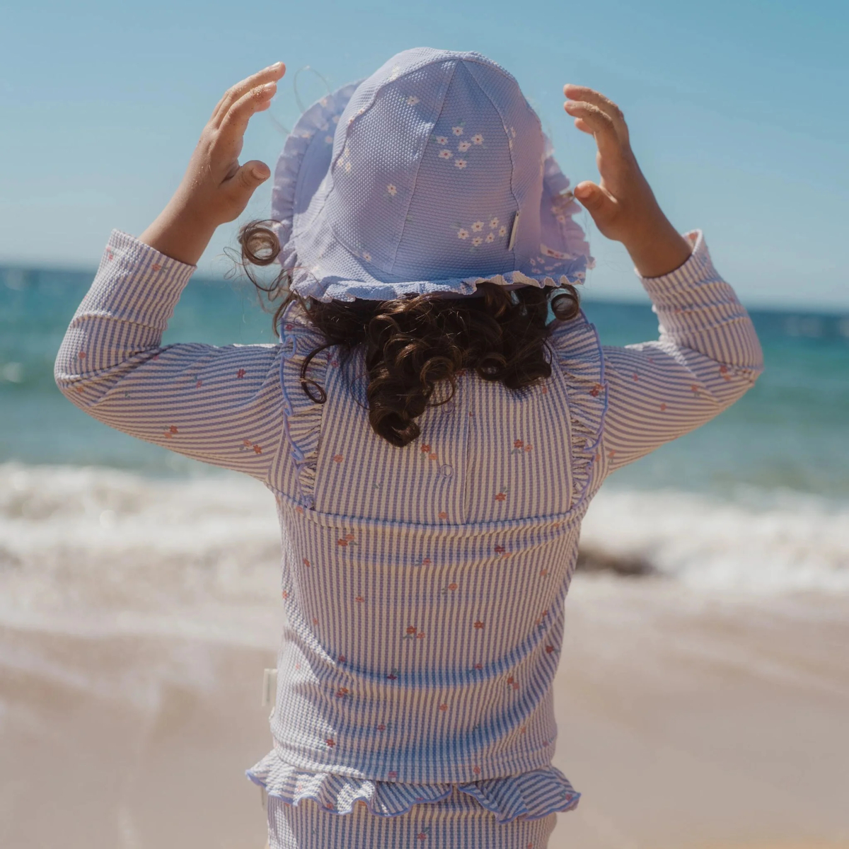 Il cappellino sole è pensato per accompagnare i bambini nelle giornate più calde, offrendo protezione e comfort durante ogni momento all’aperto. Realizzato in tessuto morbido ed elasticizzato, si adatta delicatamente alla testa garantendo una vestibilità stabile senza stringere. Il bordo con ruches aggiunge un tocco leggero e giocoso, creando un effetto delicato e armonioso. Ideale per la spiaggia, il parco o le passeggiate, aiuta a proteggere il capo dal sole permettendo di vivere ogni avventura estiva con maggiore tranquillità. La struttura leggera lo rende facile da indossare e comodo anche durante l’uso prolungato, perfetto per accompagnare i più piccoli tra giochi, scoperte e momenti all’aria aperta.