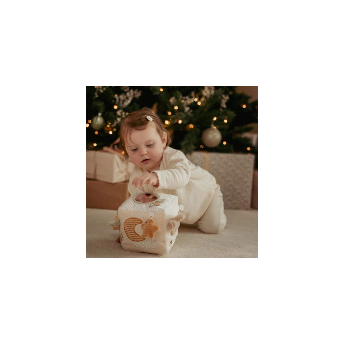 Un cubo morbido, delicato e pieno di sorprese. Il cubo attività beige neonato è pensato per stimolare i sensi e accompagnare i primi momenti di scoperta con colori neutri e materiali piacevoli al tatto.